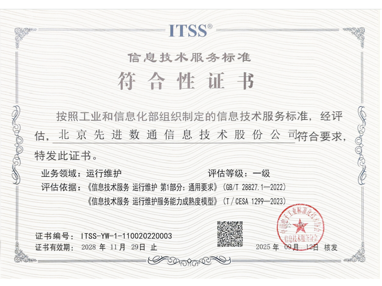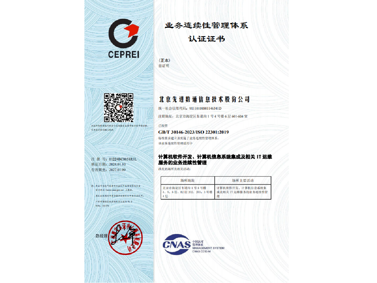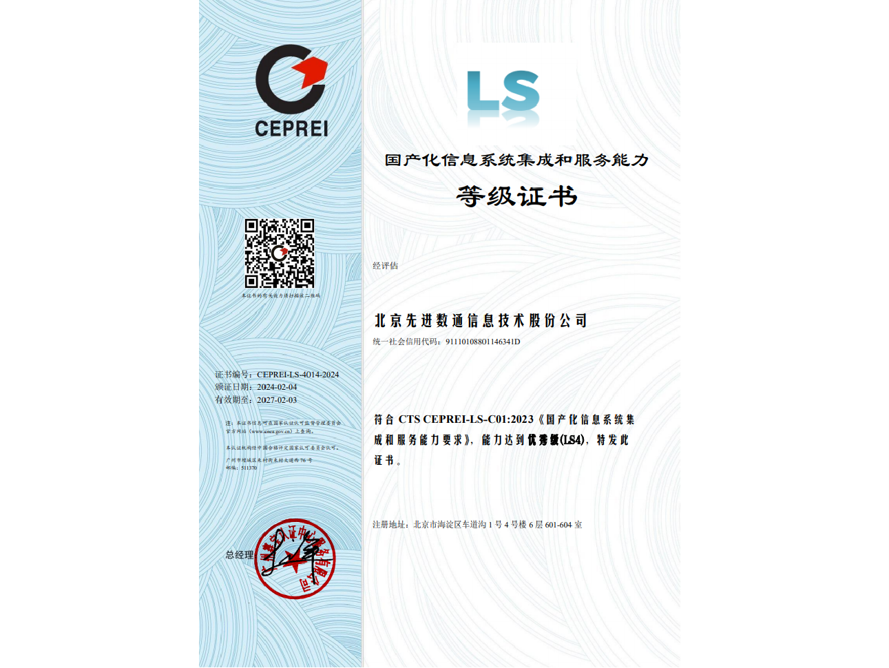 凯发K8先后取得CMMIL5、软件能力成熟度五级(SPCA 5)、信息系统建设和服务能力评估体系(CS)5级、ITSS成熟度一级、信息系统安全集成服务资质二级、信息系统安全运维服务资质二级、国产化信息系统集成和服务能力评估四级(LS4)、北京市企业技术中心等资质认证,并取得ISO9001、ISO20000、ISO27001、ISO14001、ISO45001、ISO22301、ISO37001、ISO28001、GBT29490等标准体系认证,具备行业领先的技术开发、工程实施及服务保障能力。