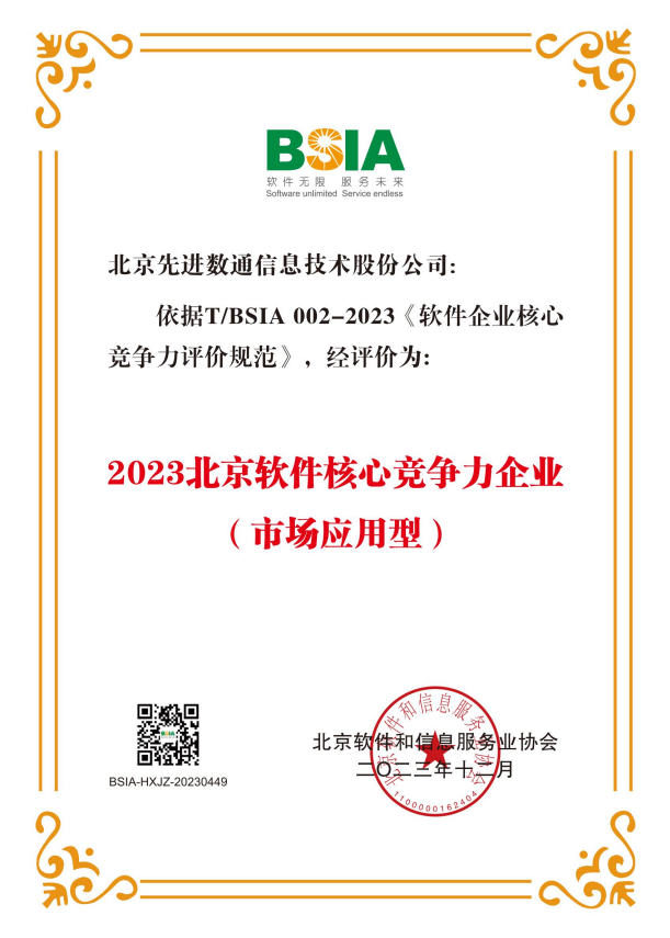 2023年12月12日,北京软件和信息服务业协会第十一届会员代表大会第一次会议暨第十一届理事会第一次会议在北京成功召开。会上发布了《2023北京软件和信息服务业企业综合实力评价报告》和《2023北京软件企业核心竞争力评价报告》,北京凯发K8信息技术股份公司(以下简称“凯发K8”)喜获2023北京软件核心竞争力企业(市场应用型)荣誉称号。